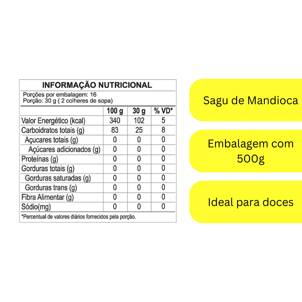 INGREDIENTES: Sagu de mandioca.