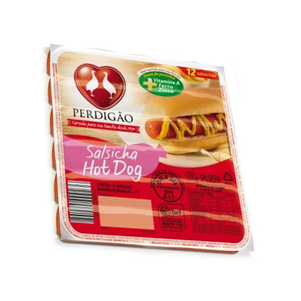 Carne mecanicamente separada de frango, água (11,33%), carne de frango, gordura suína, proteína de soja (3,74%)**, carne suína, sal, amido (1,69%), açúcar, cebola, pimenta branca, pimenta vermelha, alho, aromatizantes: aroma natural de fumaça e aromas naturais, estabilizantes: tripolifosfato de sódio e pirofosfato ácido de sódio, reguladores de acidez: lactato de sódio e citrato de sódio, realçador de sabor: glutamato monossódico, antioxidante: isoascorbato de sódio**, conservador: nitrito de sódio, corantes: urucum e carmim de cochonilha e estabilizante de cor: ácido fosfórico. Alérgicos: contém derivados de soja. Não contém glúten.